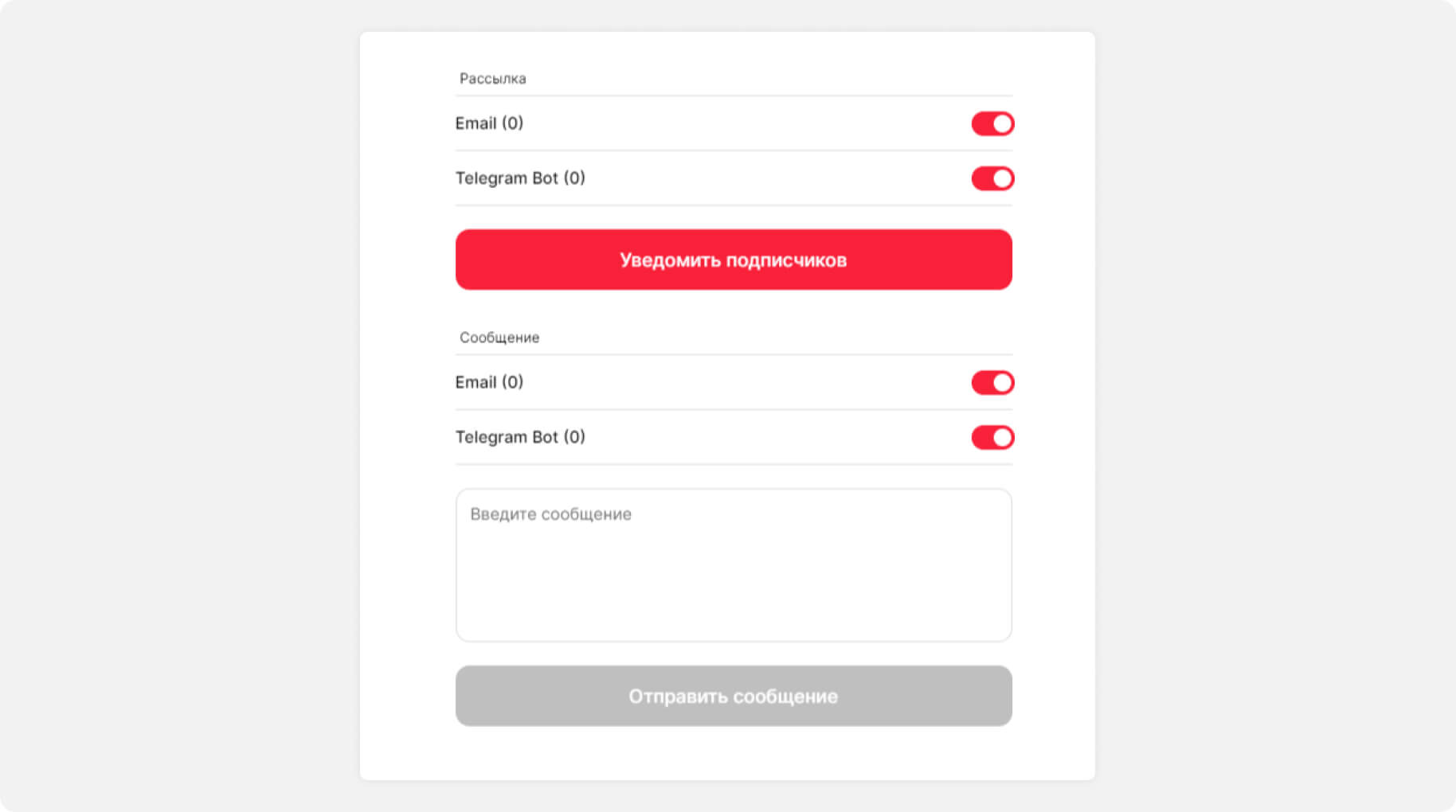 Обратите внимание: рассылка уведомлений и сообщений происходит по email и через Telegram бота. Если вы настраивали Telegram подписку через ссылку, слушатели подпишутся на ваш канал, где вы сами сможете рассказывать им все важные новости проекта.